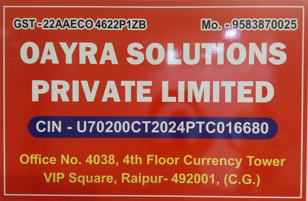 Company operations are in different fields of "Project Liaisoning for Government , Public and Private Sector , IT Business Solution , Logistic and transportation , Management Consultancy". OAYRA SOLUTIONS PRIVATE LIMITED is a Private Limited Company, governed by the Companies Act as a company limited by shares. Classified as a Non-government company, it is registered under the Registrar of Companies RoC-Chhattisgarh. According to the Ministry of Corporate Affairs (MCA), this company was incorporated on 01-08-2024 and last updated on 05-08-2024. Its Corporate Identification Number (CIN) is U70200CT2024PTC016680